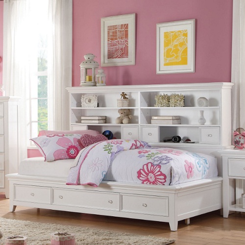 The collection blends style and function to offer contemporary style and great storage for youth bedroom in your home. Choose from a variety of color options for a sleek and sophisticated style. Complementary storage options include a nightstand, chest with drawers, dresser, mirror, and other pieces for a complete bedroom ensemble. Available in white, cherry oak and espresso finishes, these bedroom pieces feature chambered drawer fronts, chamfered trim, and metal knobs for a modern look.