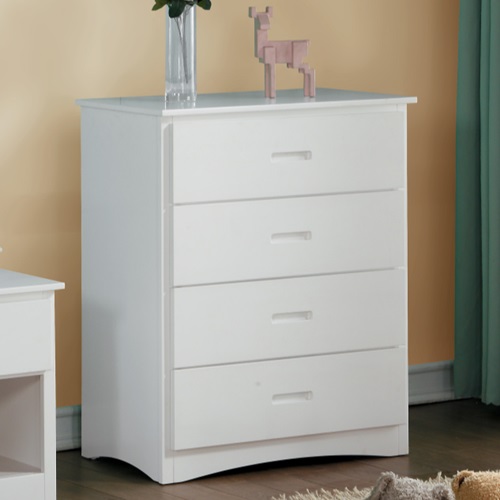 Elevate your storage solution with our elegant four-drawer chest in a pristine white finish. This stylish piece features four spacious drawers, each equipped with smooth roller side glides for effortless access to your clothing and accessories. The modern cutout handles add a contemporary flair while maintaining a sleek and minimalist design. Perfect for any bedroom décor, this chest combines functionality and style, providing ample storage space while enhancing your room's overall aesthetic. Keep your space organized and chic with this versatile four-drawer chest.